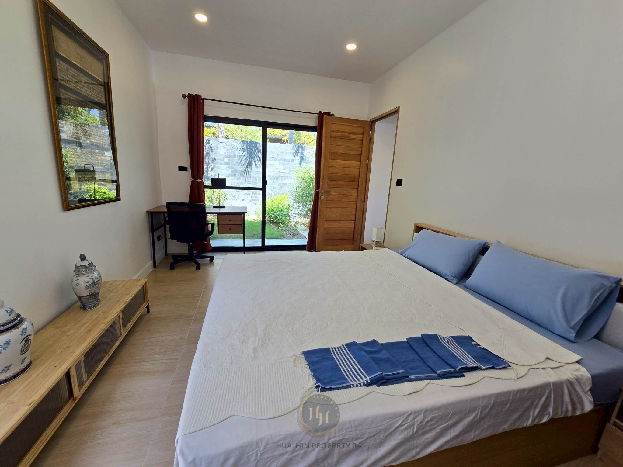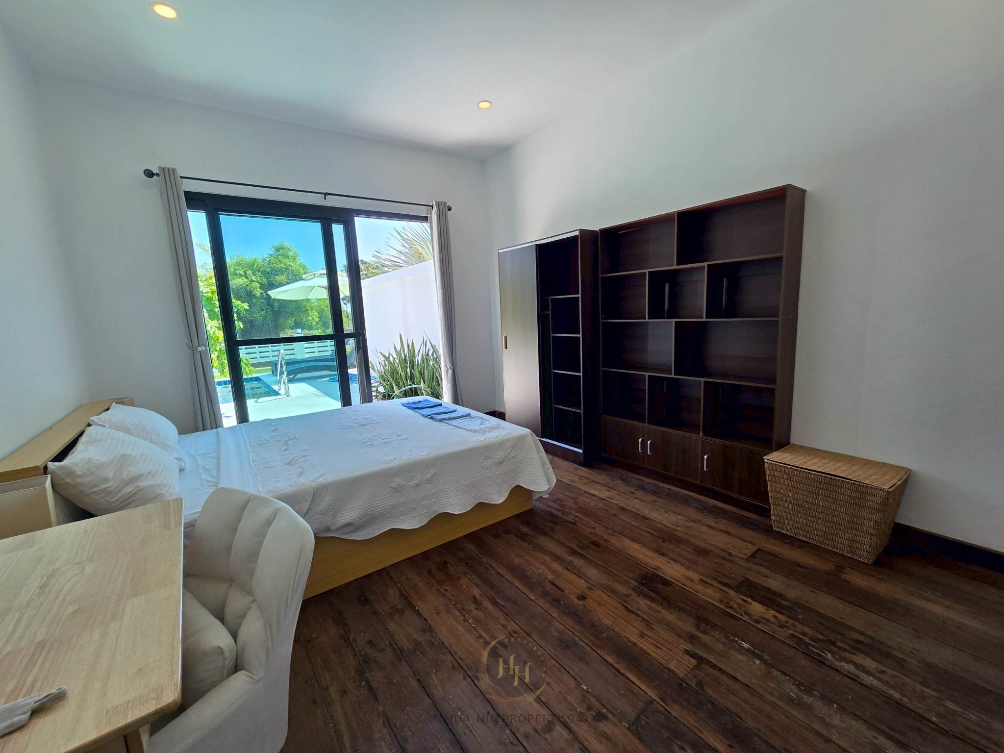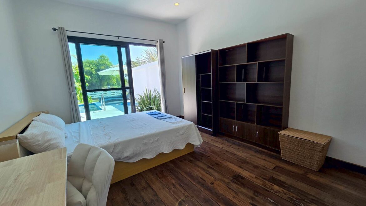 • Master bedroom with pool view and natural airflow
