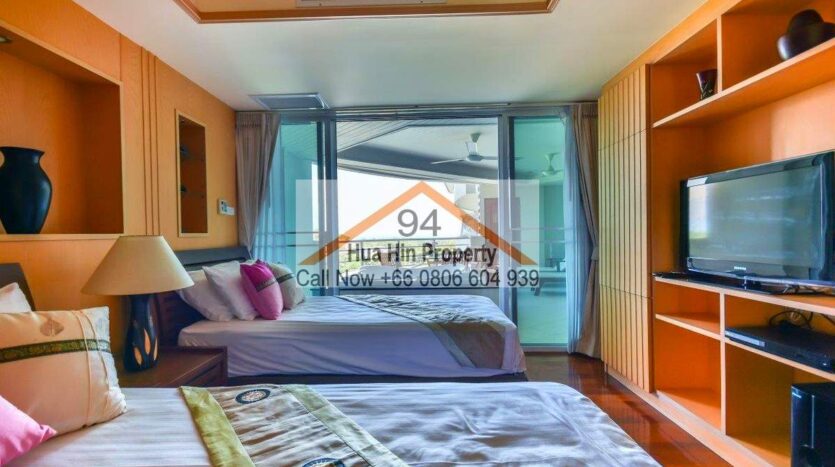 This unit is located on the 4th floor, inner corner with all day shaded balcony, large rooms, amazing views, fully equipped kitchen. Close to the beautiful and secluded Had Sa Noi beach but has all the local amenities large swimming pool with lush garden areas just 10 min drive south from Hua Hin.