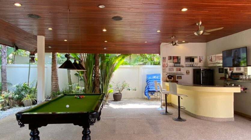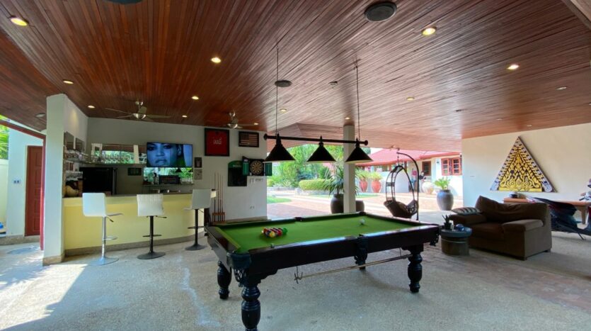- Covered bar with a pool table.