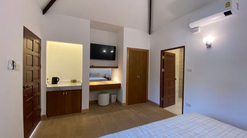 - กว้างขวาง มีแอร์ ตู้เสื้อผ้าบิวท์อิน เตียงคิงไซส์ และทีวี