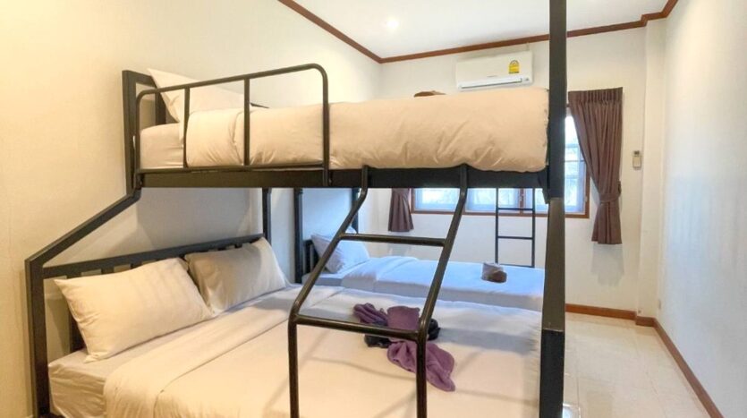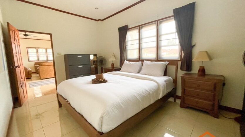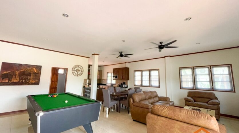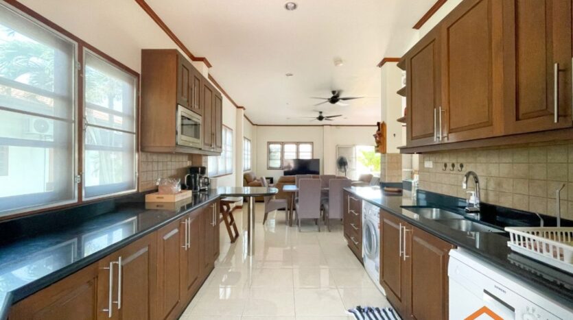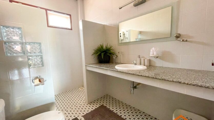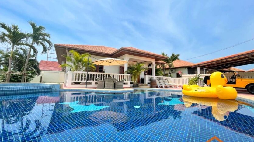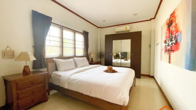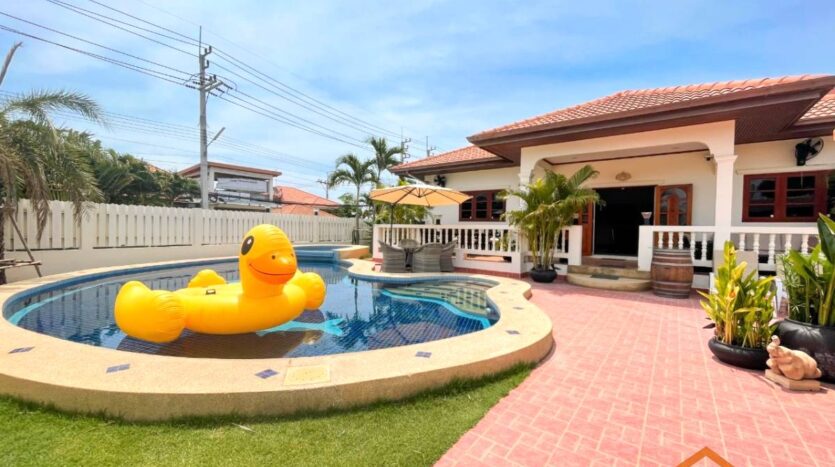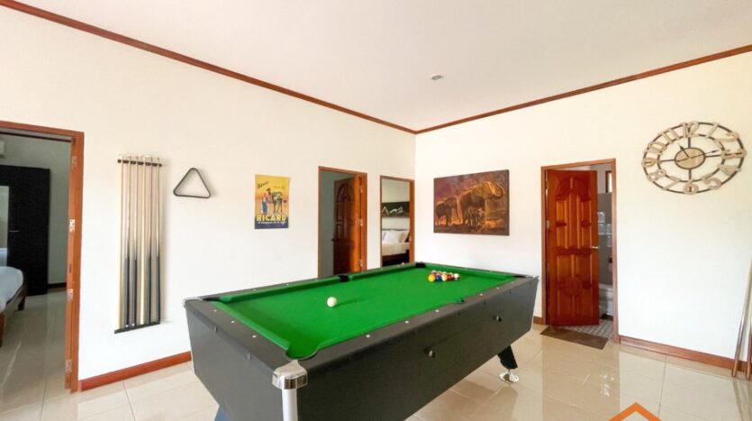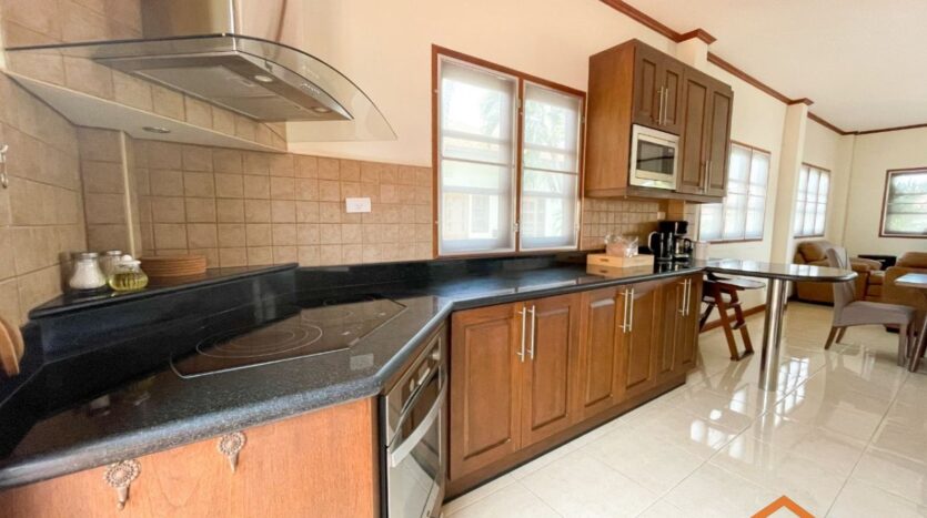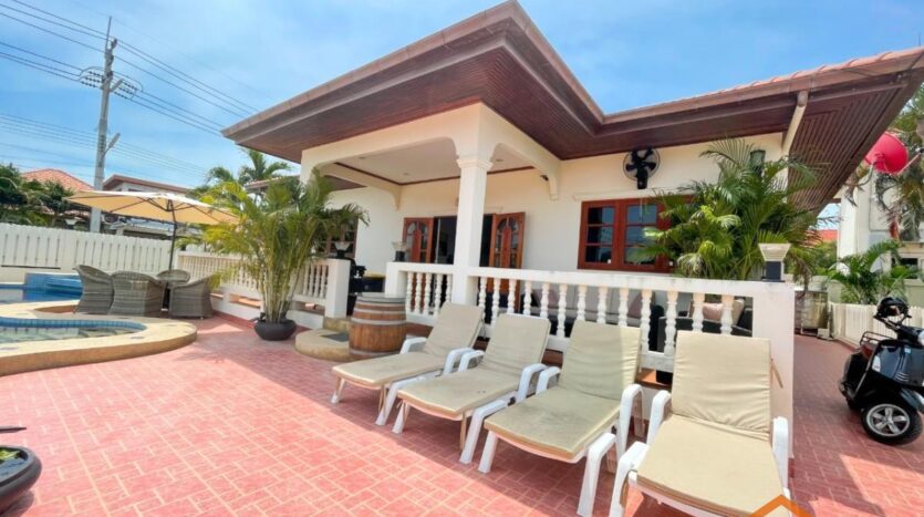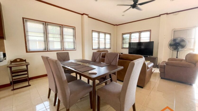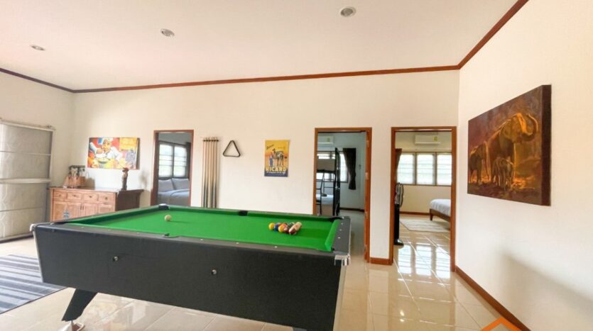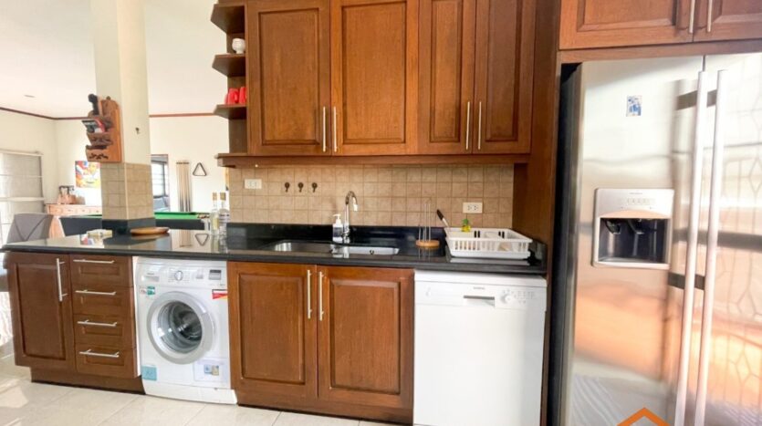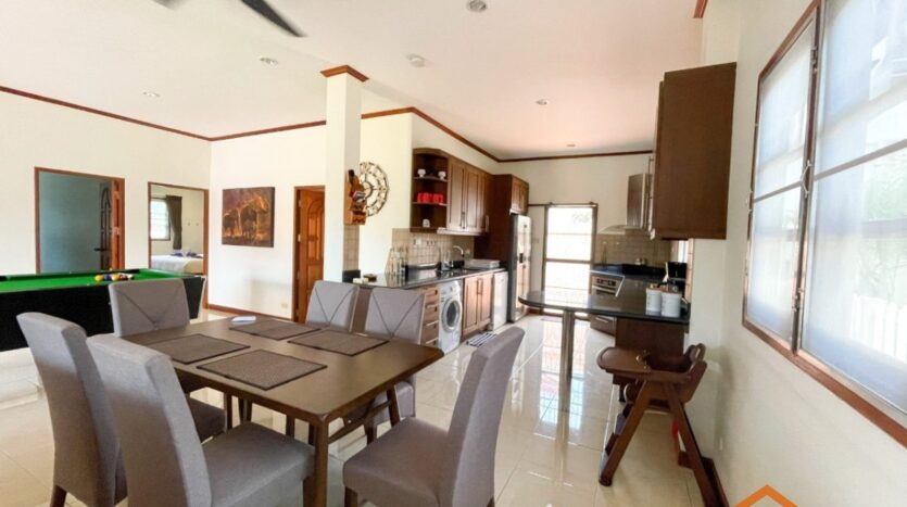 A location, on the road between Soi 94 and Soi 102. Minutes from lots of shops, restaurants and convenience stores on Soi 102 and the Entertainment hub of Hua Hin on Soi 94. Great rental investment for short, or long-term rentals. Ready to move in, furnished and equipped. 3 generous sized bedrooms and 2 bathrooms, open-plan kitchen and livingroom. Nice pool area around the free form swimming pool. Good quality furniture, kitchen equipped with dishwasher, washing machine and an oven.
