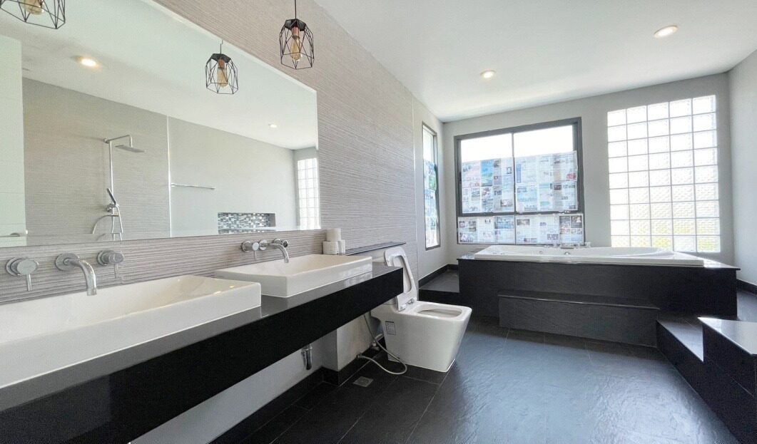 - 1 ห้องนอนใหญ่ พร้อมตู้เสื้อผ้าบิ้วอิน ห้องน้ำในตัว และอ่างอาบน้ำ