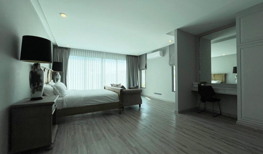 Discover a luxurious modern design in this 3-story pool villa, situated in an exclusive and private community of only 5 homes. Spanning 200 square wah (800 sq.m.), this property is just a short 150-meter walk to the beach. Its strategic location provides easy access to Makro Hua Hin, renowned restaurants, cafes, and schools, making it a perfect blend of leisure and convenience.