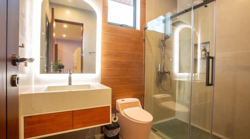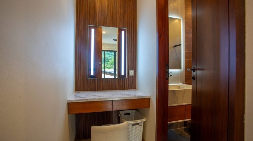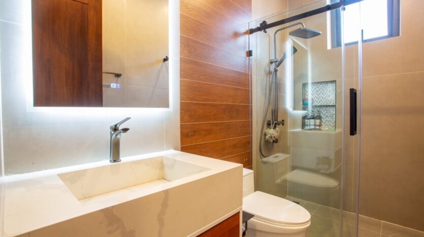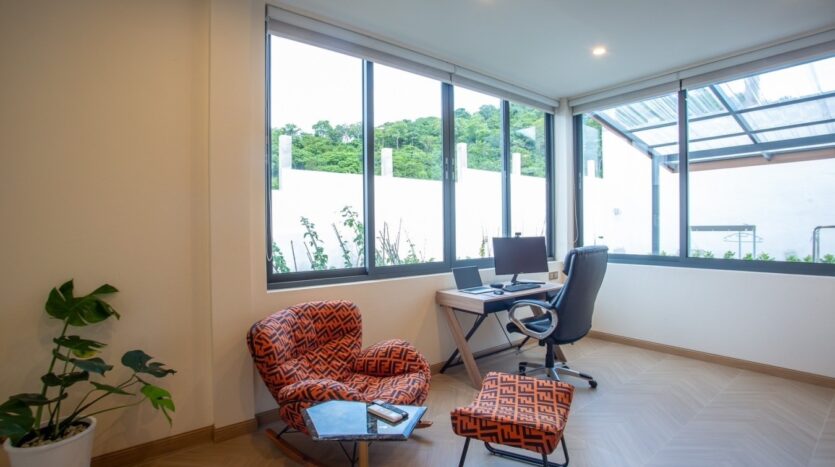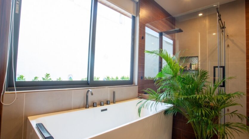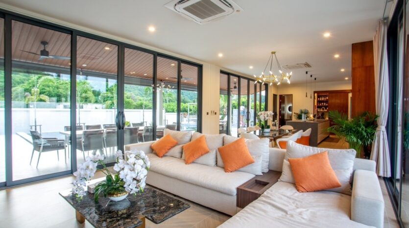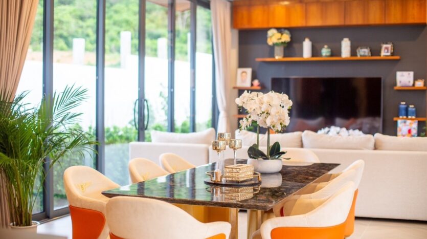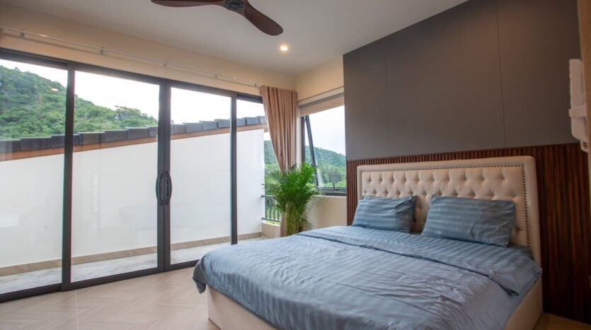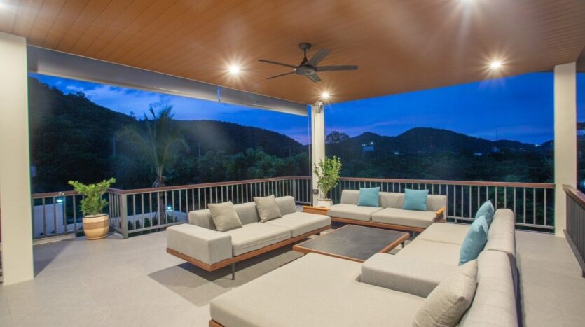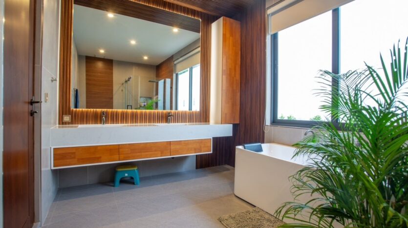 This luxurious 5-bedroom, 6-bathroom modern pool villa has been meticulously designed for both elegance and functionality. Completed in 2024, it’s situated in a peaceful location with breathtaking mountain views and glimpses of the sea, just minutes from Hua Hin town and the beach.