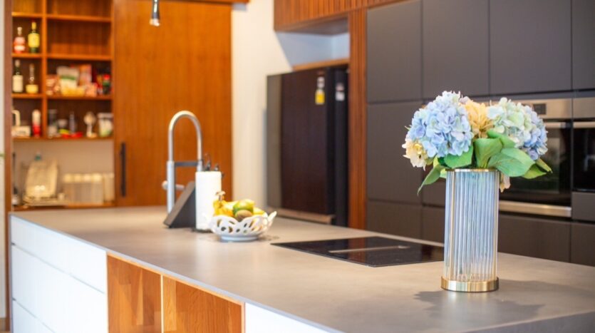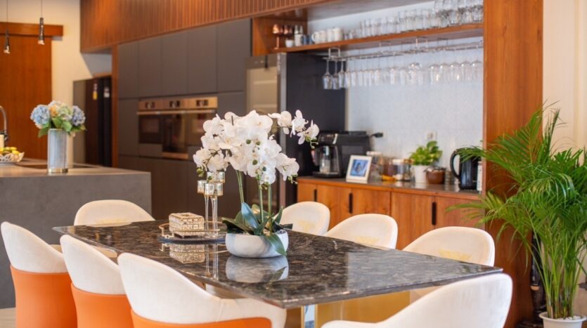 ห้องนั่งเล่นและห้องรับประทานอาหารกว้างขวาง พร้อมครัวยุโรปทันสมัยและเคาน์เตอร์ไอส์แลนด์