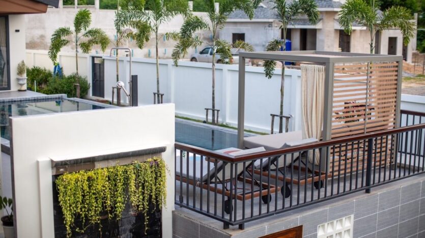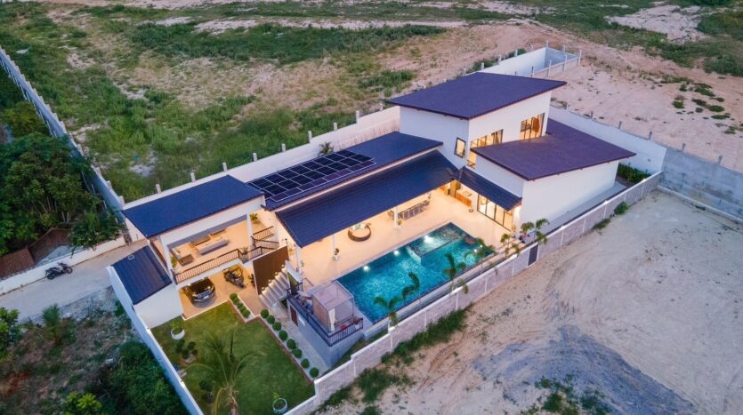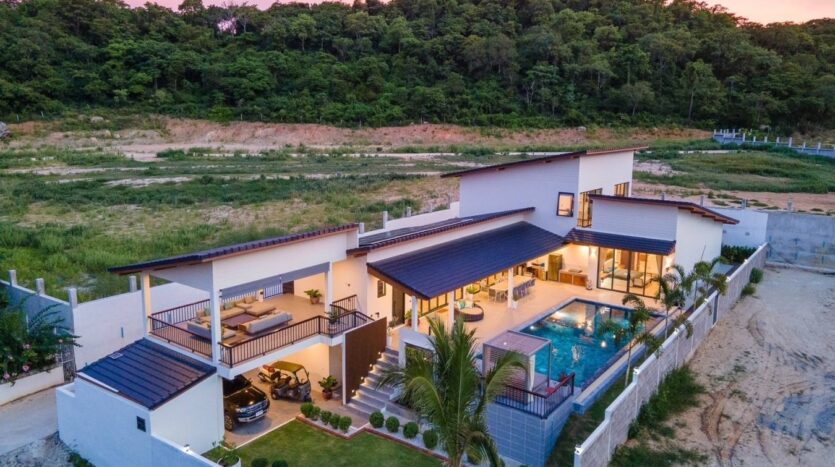 พูลวิลลาหรูสไตล์โมเดิร์น 5 ห้องนอน 6 ห้องน้ำ ออกแบบอย่างพิถีพิถันเพื่อมอบความหรูหราและการใช้งานที่ลงตัว สร้างเสร็จในปี 2024 ตั้งอยู่ในทำเลที่ยอดเยี่ยม ใกล้ตัวเมืองหัวหินและชายหาด โดดเด่นด้วยวิวภูเขาและทะเลลิบๆ พร้อมบรรยากาศที่เงียบสงบ
