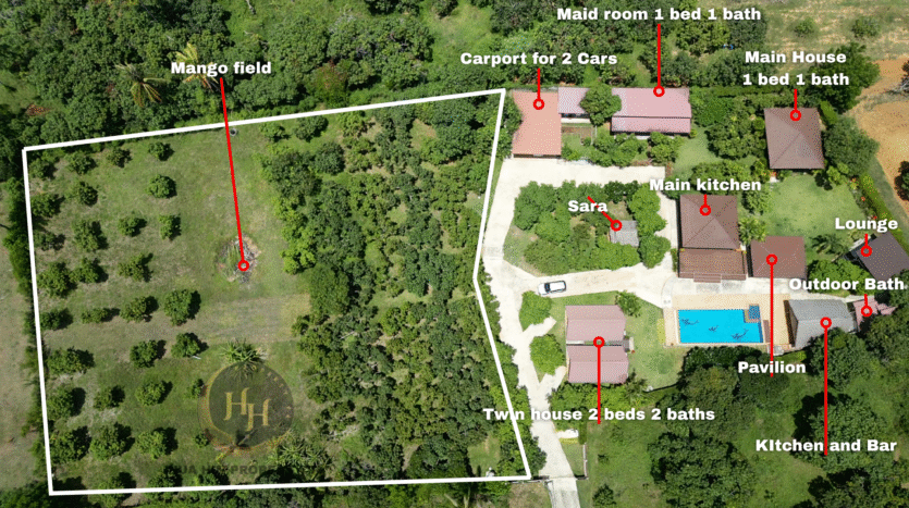 - Accommodation: Teakwood main house (Fully furnished) + 3 Guest Villas (ensuite bathrooms & A/C).
