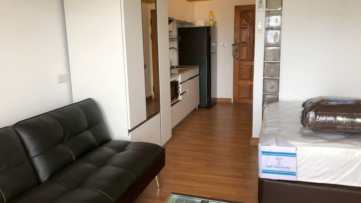 Enjoy panoramic sea and Hua Hin city views from this high-floor, north-facing studio at Chain Condo Hua Hin.