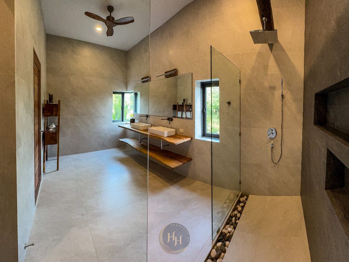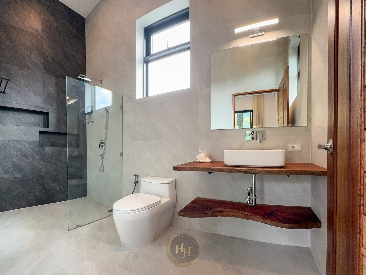 Built with modern infrastructure and energy efficiency in mind, the property includes a 12 kW solar power system with battery storage, three-phase European-standard electrical installation and preparation for an EV charger. The villa also offers fiber internet connectivity, LAN outlets in every room, smart home switches and CCTV security.