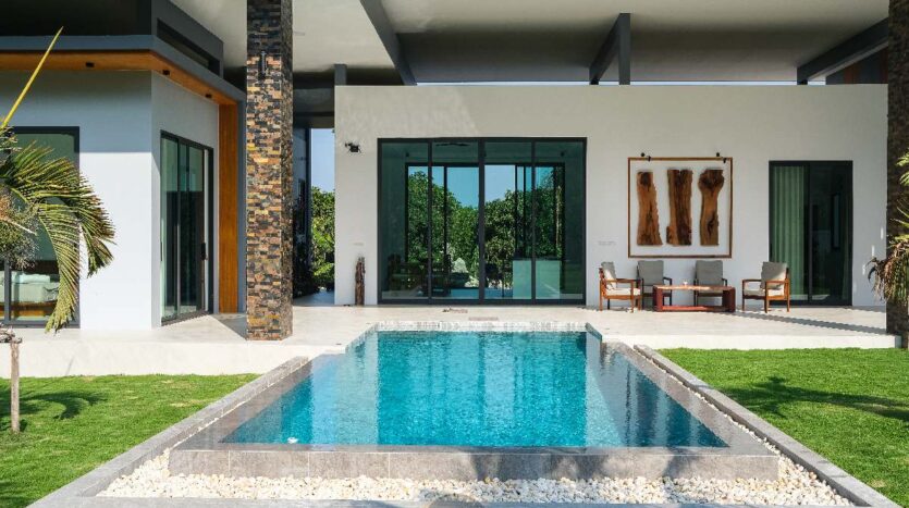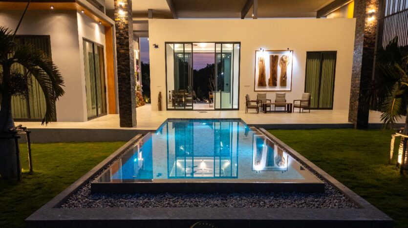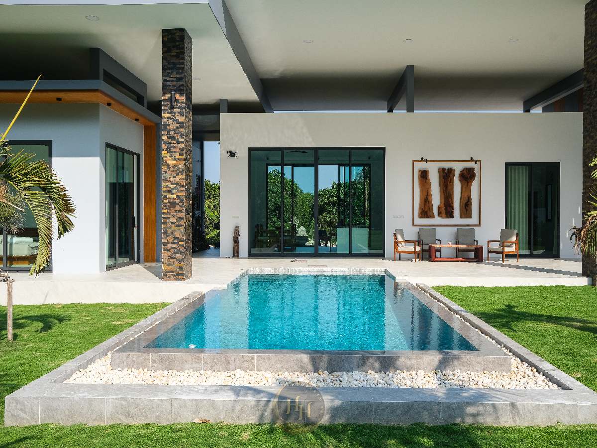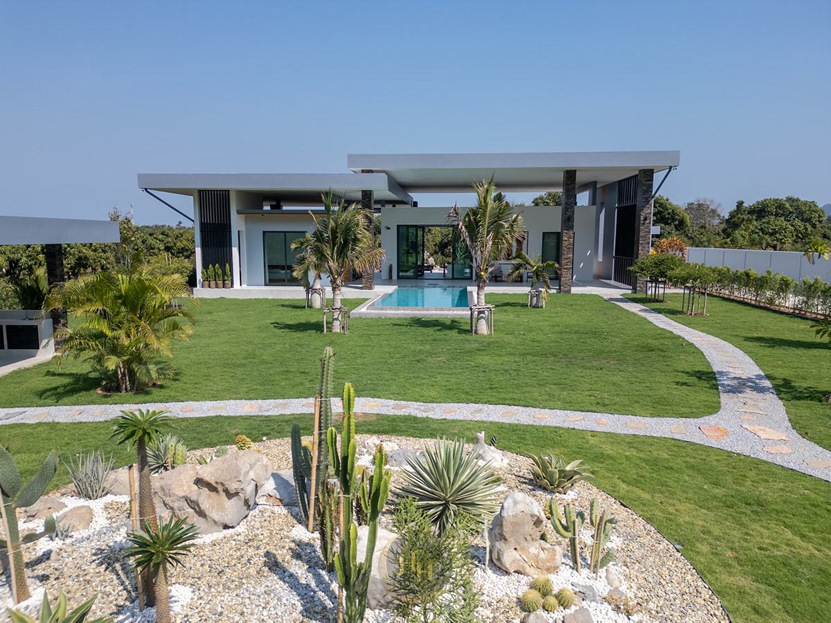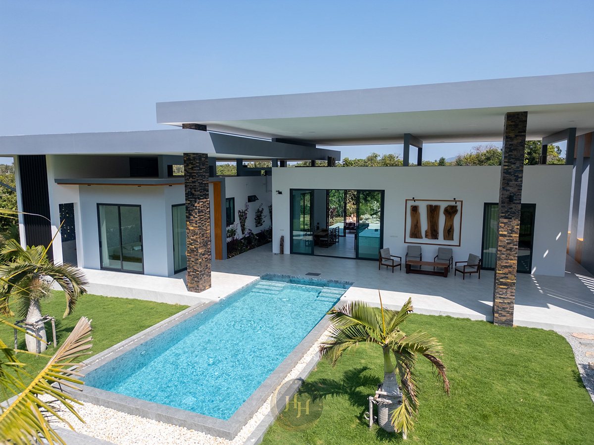 This exceptional contemporary pool villa is located in the peaceful area of Sam Roi Yot, only a short drive from Hua Hin. Surrounded by stunning mountain scenery and natural landscapes, the property offers a perfect balance of privacy, comfort and modern tropical living.